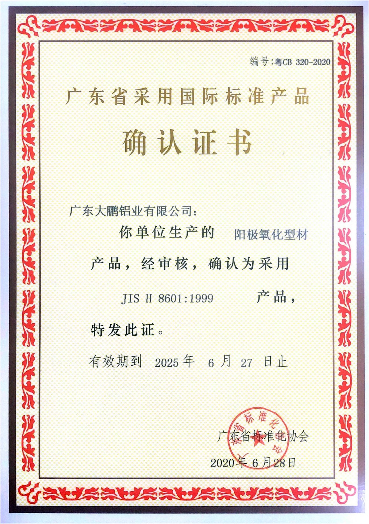 • 喜訊!廣東大鵬鋁業有限公司已八年榮獲“廣東省守合同重信用企業”榮譽稱號